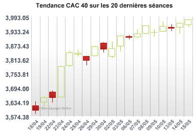 L’indice CAC 40 a gagné 16,17 points à 3.982,23 points, se rapprochant des 4.000 points, dans un volume d’échanges faible de 2,5 milliards d’euros. La veille, il avait pris 0,53%.