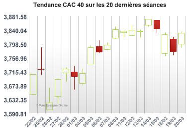 L’indice CAC 40 a perdu 54,71 points à 3.774,85 points, dans un volume d’échanges assez faible de 3,035 milliards d’euros. La veille, il avait rebondi de 1,43% après trois jours de baisse.
