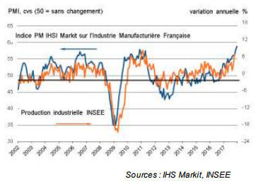 Le secteur manufacturier français termine l’année 2017 sur des bases solides, la production et les effectifs des fabricants affichant leurs plus fortes croissances depuis le milieu de l’année 2000, soutenues par la plus forte expansion du volume des nouvelles commandes depuis 7 ans. Le renforcement de la capacité opérationnelle des entreprises n’a pas suffi à éviter une nouvelle accumulation du travail en cours, la plus importante depuis plus de 11 ans, cette hausse du travail en attente dopant par ailleurs le moral des fabricants qui affichent leur plus fort degré de confiance depuis 5 ans et demi (début de la collecte des données pour cette variable). Sur le front des prix, les tensions inflationnistes s’atténuent quelque peu par rapport à novembre mais restent néanmoins élevées.